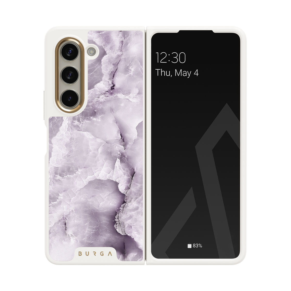 The gray violet-colored Black Currant Samsung Galaxy Z Fold 5 phone case showcases a soft marble design that will add a touch of luxury to your style. The color itself represents the future and dreams, yet the nature of it offers a calming effect. Keep a piece of serenity in your hands.