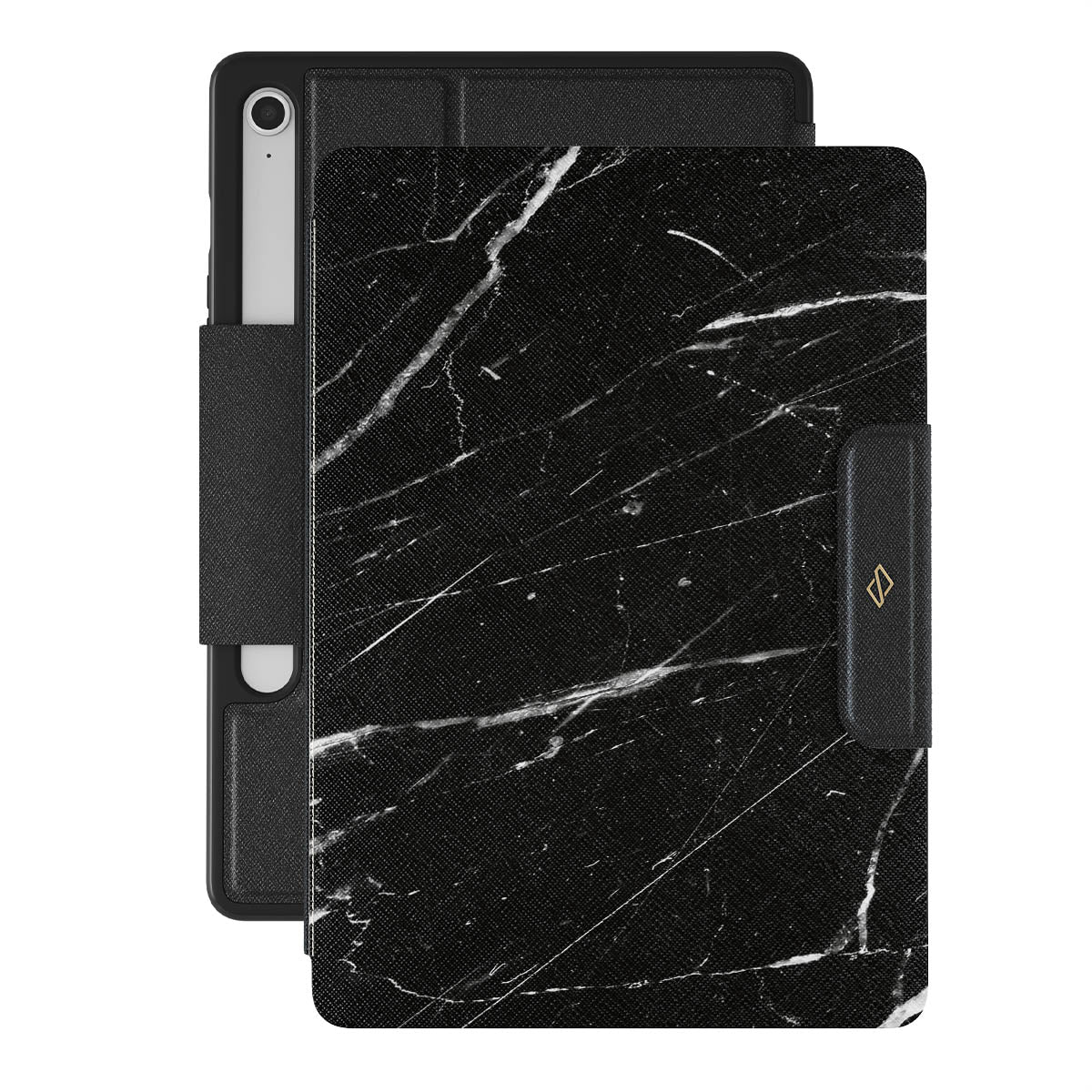 The classical black marble Galaxy Tab case cover is a must for every fashion lover. Add this to your collection with our Noir Origin Samsung Galaxy Tab S10 FE folio case cover. The opposites attract, and the black and white duo found on our marble pattern just confirms that.
