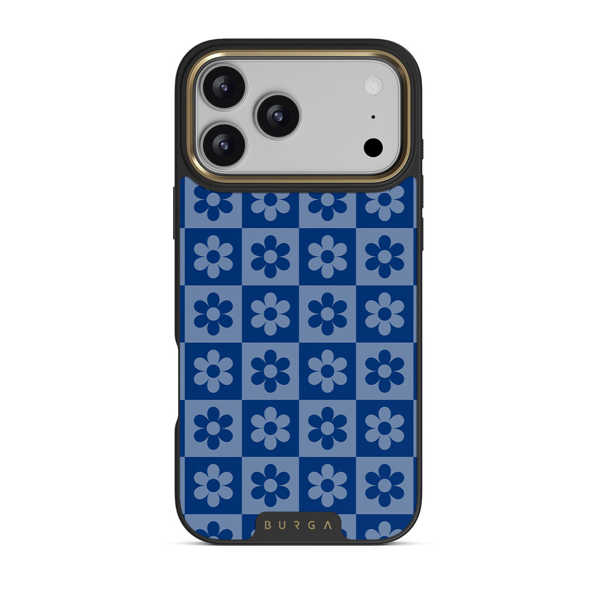 A true statement design, featuring a captivating checkered pattern with icy blue tones and a beautiful flower adorning each square. Our iPhone 17 Pro Max phone case not only offers reliable protection for your device but also captures the essence of the fun and carefree Y2K era. Embrace your inner flower child with the Bloom Boom phone case and let your tech bloom with style.