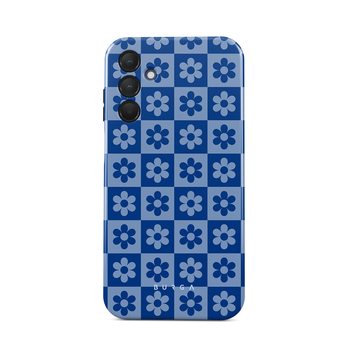 A true statement design, featuring a captivating checkered pattern with icy blue tones and a beautiful flower adorning each square. Our Samsung Galaxy A15 4G / 5G phone case not only offers reliable protection for your device but also captures the essence of the fun and carefree Y2K era. Embrace your inner flower child with the Bloom Boom phone case and let your tech bloom with style.