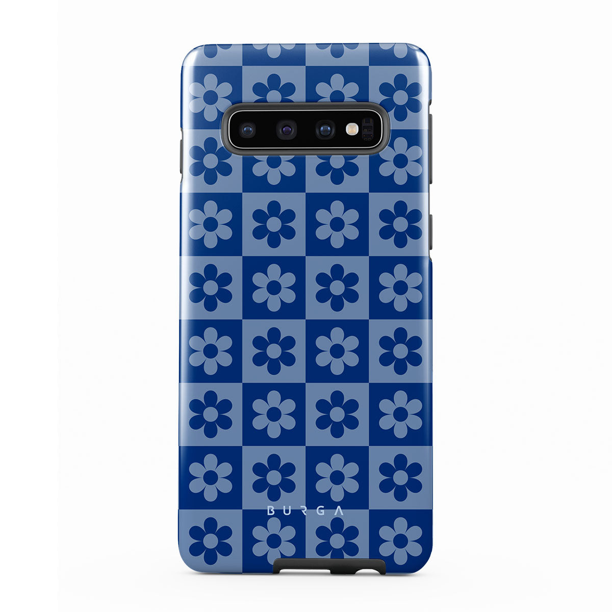 A true statement design, featuring a captivating checkered pattern with icy blue tones and a beautiful flower adorning each square. Our Samsung Galaxy S10 4G phone case not only offers reliable protection for your device but also captures the essence of the fun and carefree Y2K era. Embrace your inner flower child with the Bloom Boom phone case and let your tech bloom with style.