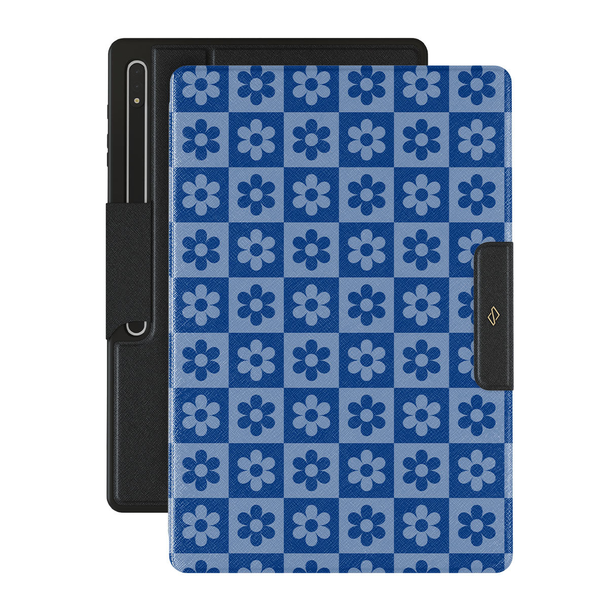 A true statement design, featuring a captivating checkered pattern with icy blue tones and a beautiful flower adorning each square. Our folio case not only offers reliable protection for your device but also captures the essence of the fun and carefree Y2K era. Embrace your inner flower child with the Bloom Boom folio case and let your tech bloom with style.