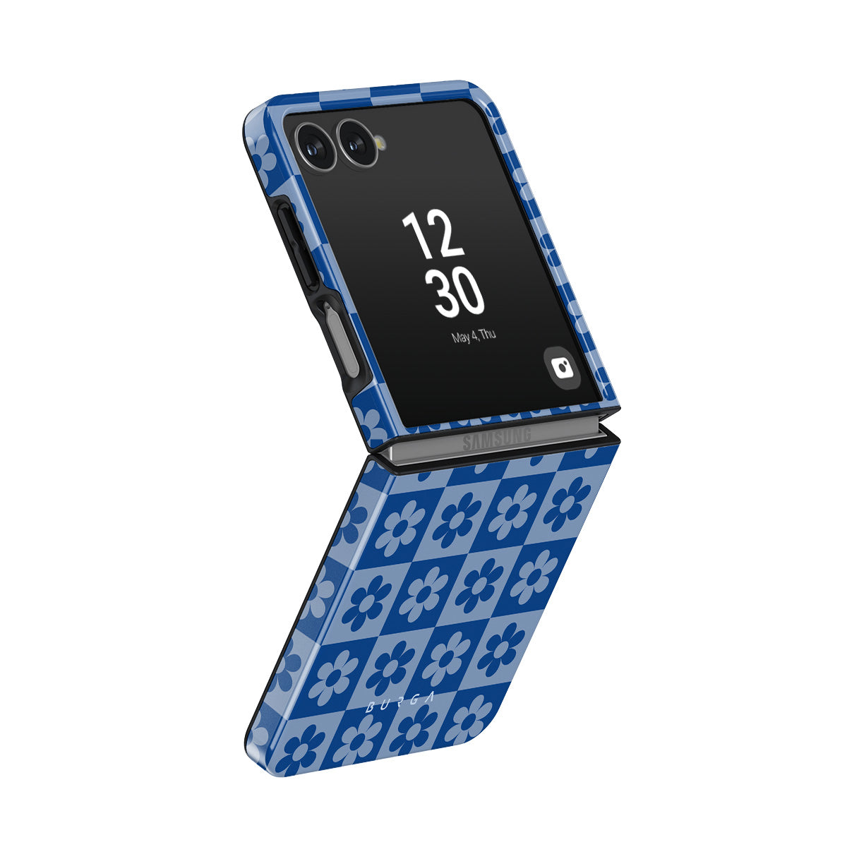 A true statement design, featuring a captivating checkered pattern with icy blue tones and a beautiful flower adorning each square. Our Samsung Galaxy Z Flip 7 phone case not only offers reliable protection for your device but also captures the essence of the fun and carefree Y2K era. Embrace your inner flower child with the Bloom Boom phone case and let your tech bloom with style.