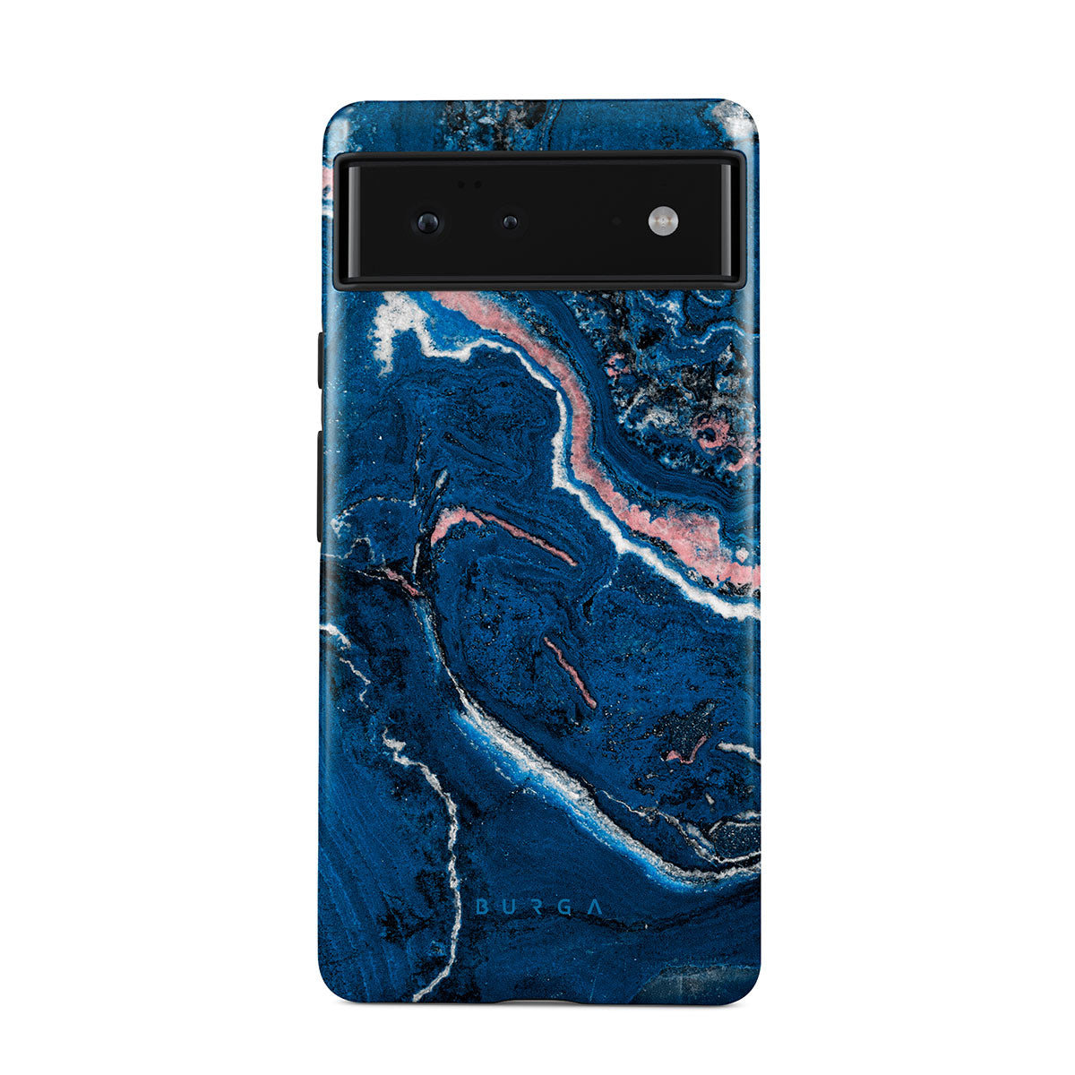 Electric indigo blue meets white, and pastel pink swirls in a unique marble pattern in our Blue Lagoon Google Pixel 6 phone case. The modern take on a blue marble trend will look aesthetically pleasing on your device while offering durable protection from any falls.