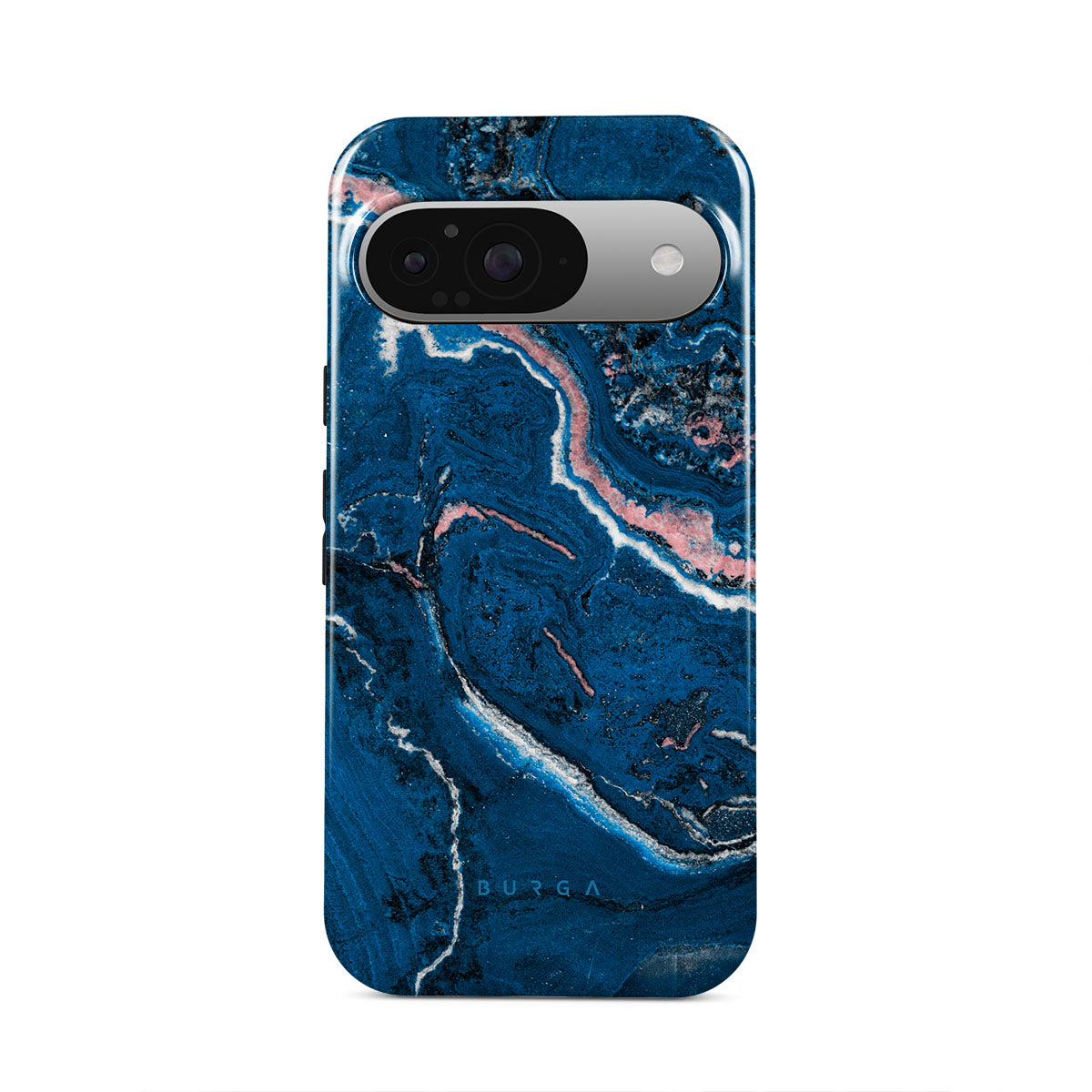 Electric indigo blue meets white, and pastel pink swirls in a unique marble pattern in our Blue Lagoon Google Pixel 9 phone case. The modern take on a blue marble trend will look aesthetically pleasing on your device while offering durable protection from any falls.
