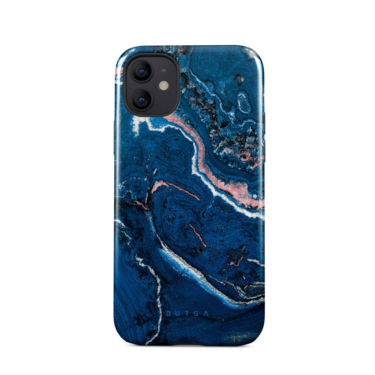 Electric indigo blue meets white, and pastel pink swirls in a unique marble pattern in our Blue Lagoon iPhone 12 phone case. The modern take on a blue marble trend will look aesthetically pleasing on your device while offering durable protection from any falls.