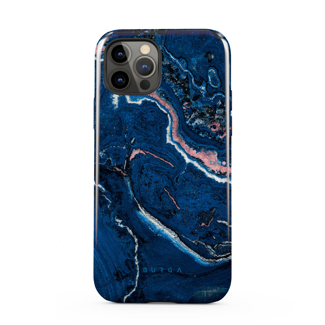 Electric indigo blue meets white, and pastel pink swirls in a unique marble pattern in our Blue Lagoon iPhone 12 Pro phone case. The modern take on a blue marble trend will look aesthetically pleasing on your device while offering durable protection from any falls.