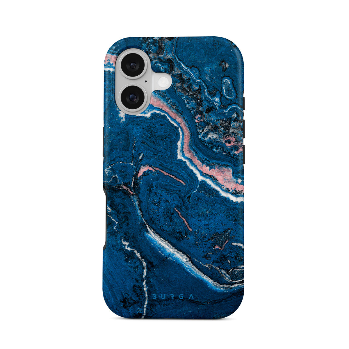 Electric indigo blue meets white, and pastel pink swirls in a unique marble pattern in our Blue Lagoon iPhone 17 phone case. The modern take on a blue marble trend will look aesthetically pleasing on your device while offering durable protection from any falls.