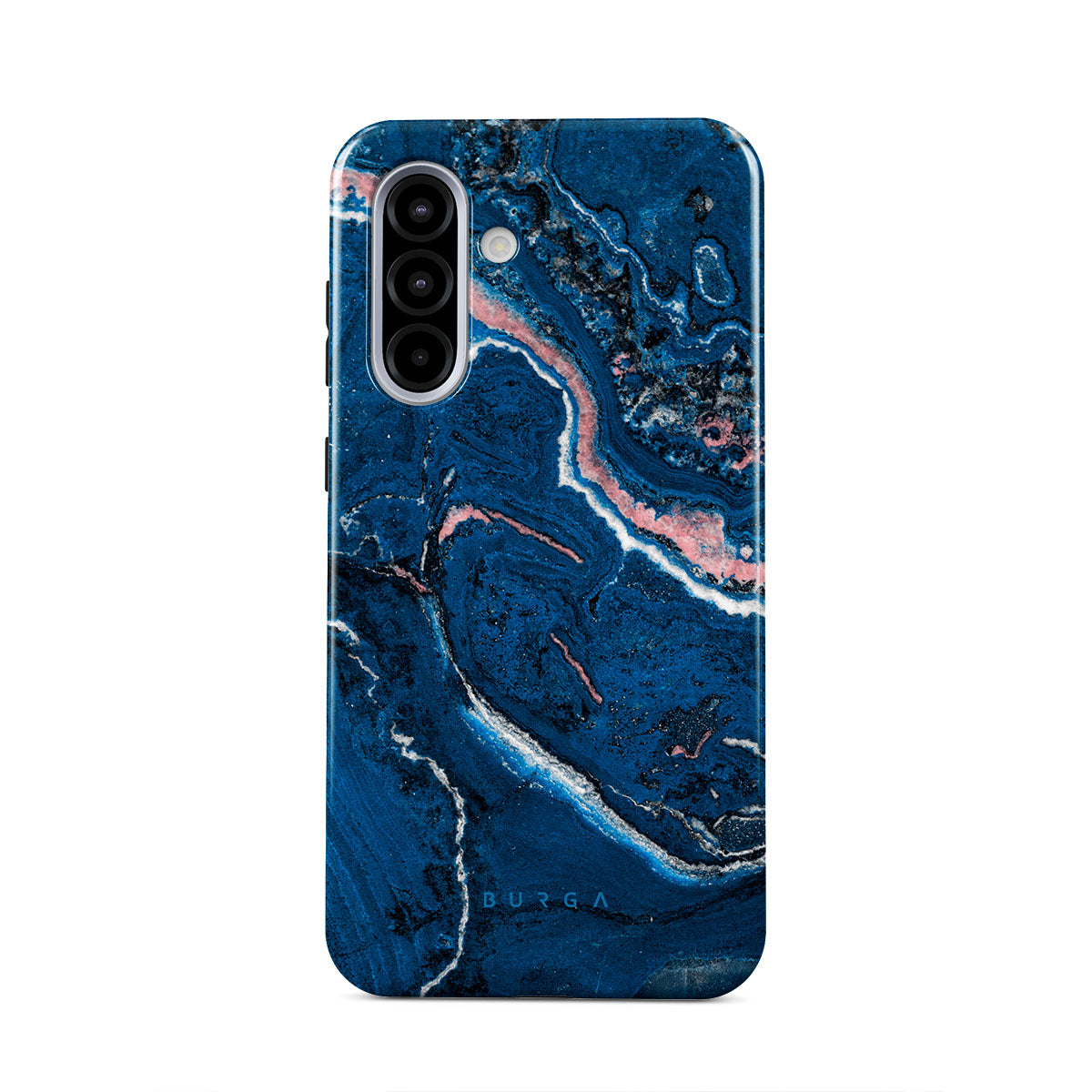 Electric indigo blue meets white, and pastel pink swirls in a unique marble pattern in our Blue Lagoon Samsung Galaxy A36 5G phone case. The modern take on a blue marble trend will look aesthetically pleasing on your device while offering durable protection from any falls.