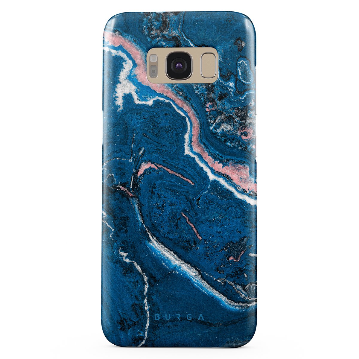 Electric indigo blue meets white, and pastel pink swirls in a unique marble pattern in our Blue Lagoon Samsung Galaxy S8 phone case. The modern take on a blue marble trend will look aesthetically pleasing on your device while offering durable protection from any falls.