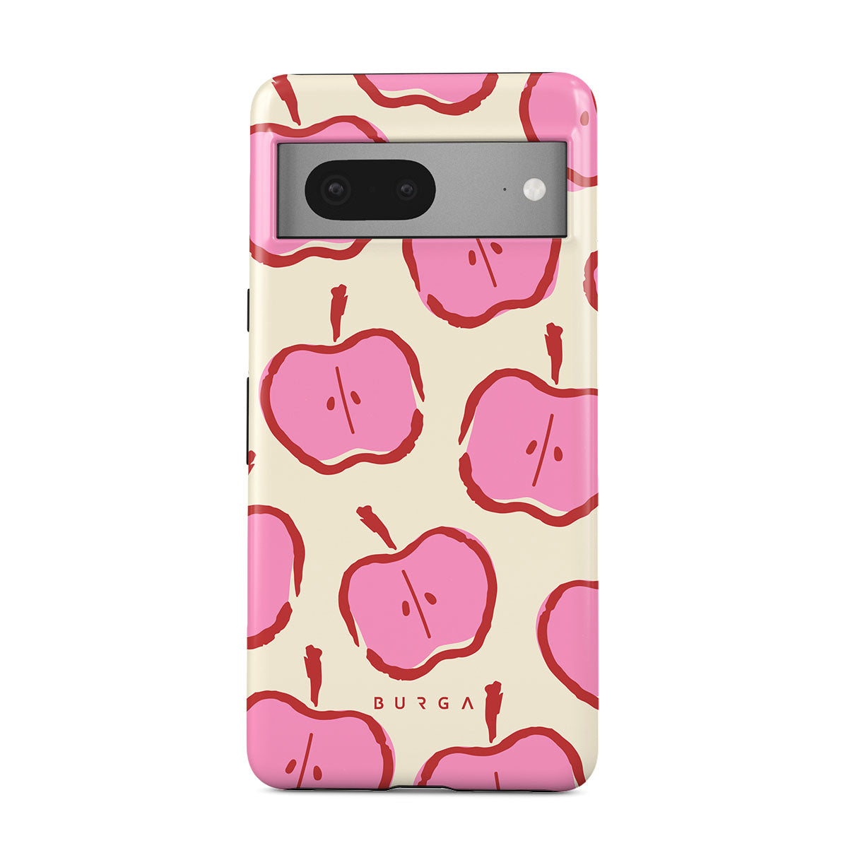 Our Bon Appétit Google Pixel 7a phone case design makes every day feel like a magical adventure filled with sweet surprises. The playful pink hues of the apples stand out brilliantly against the serene cream background, creating a captivating and enchanting visual.