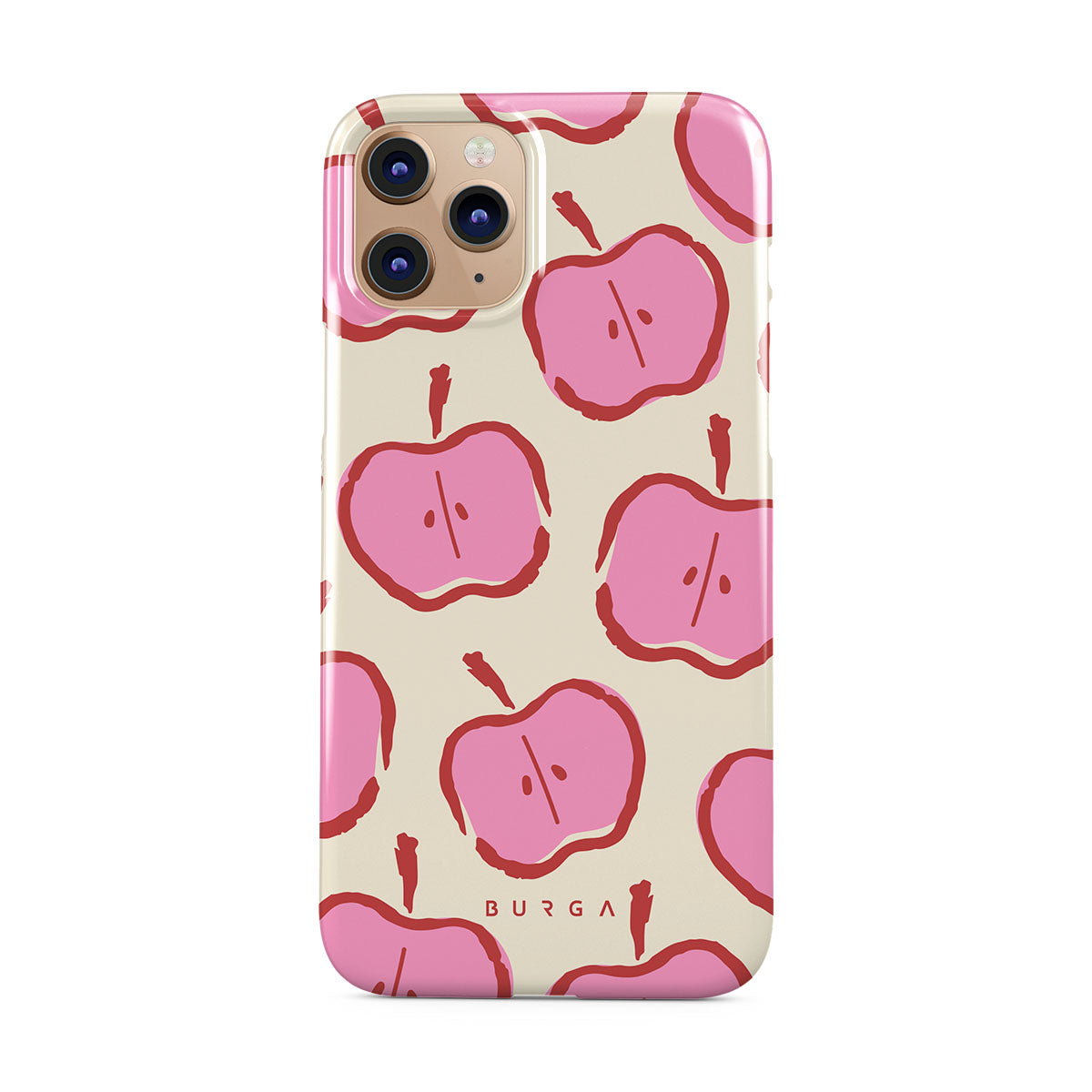 Our Bon Appétit iPhone 11 Pro phone case design makes every day feel like a magical adventure filled with sweet surprises. The playful pink hues of the apples stand out brilliantly against the serene cream background, creating a captivating and enchanting visual.