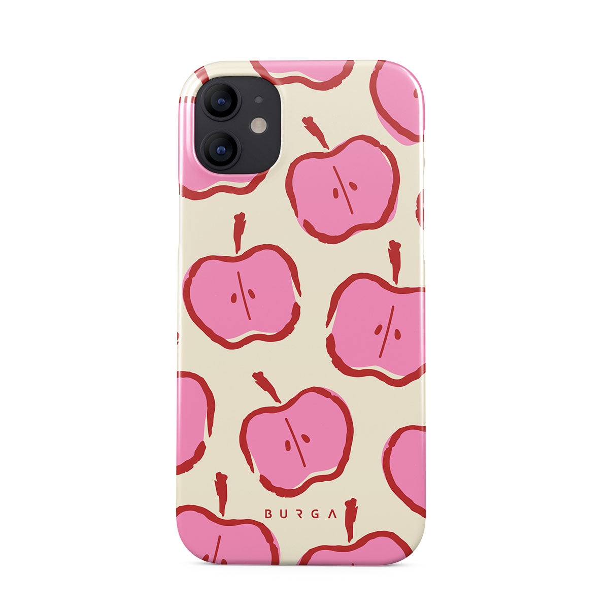 Our Bon Appétit iPhone 12 Mini phone case design makes every day feel like a magical adventure filled with sweet surprises. The playful pink hues of the apples stand out brilliantly against the serene cream background, creating a captivating and enchanting visual.