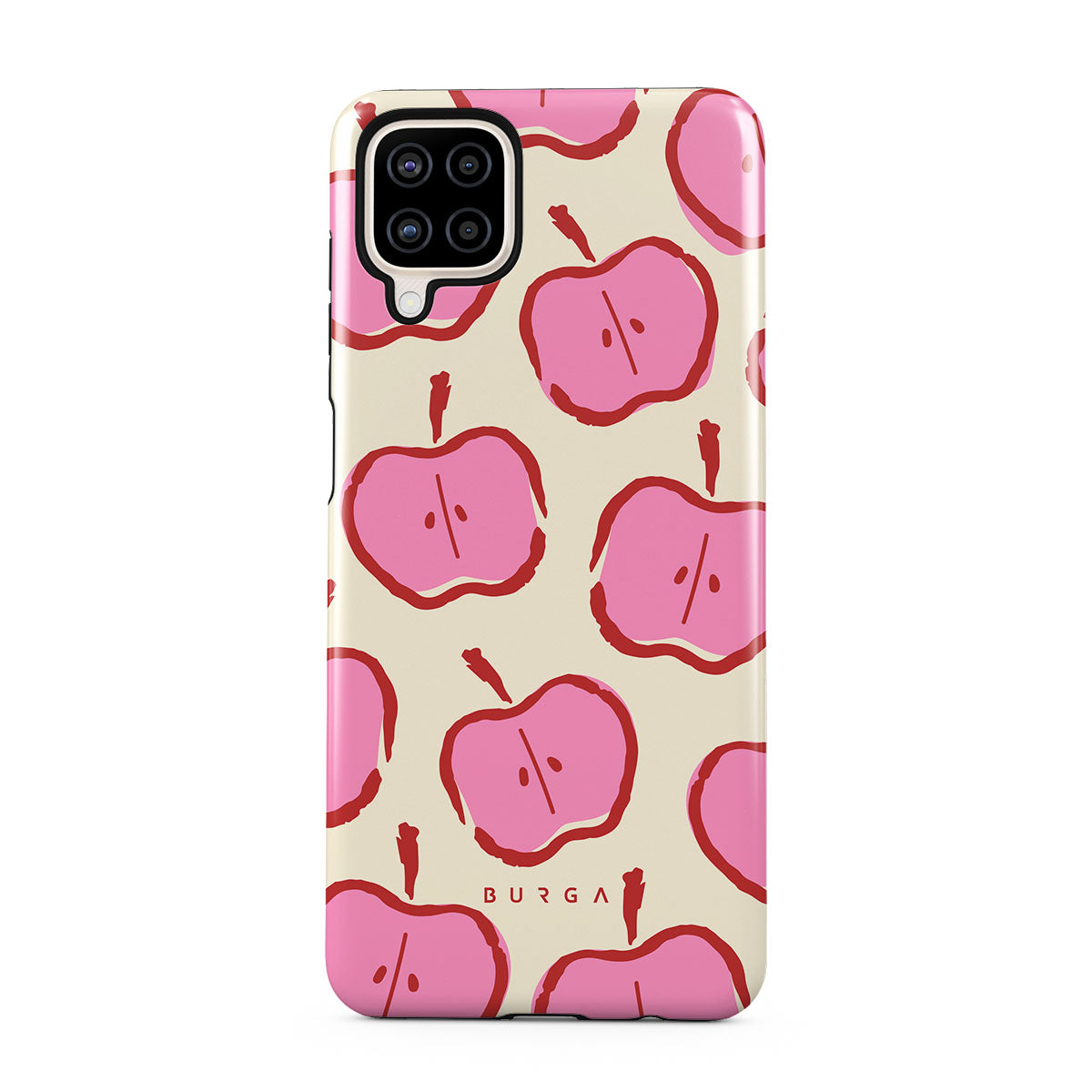 Our Bon Appétit Samsung Galaxy A12 4G phone case design makes every day feel like a magical adventure filled with sweet surprises. The playful pink hues of the apples stand out brilliantly against the serene cream background, creating a captivating and enchanting visual.