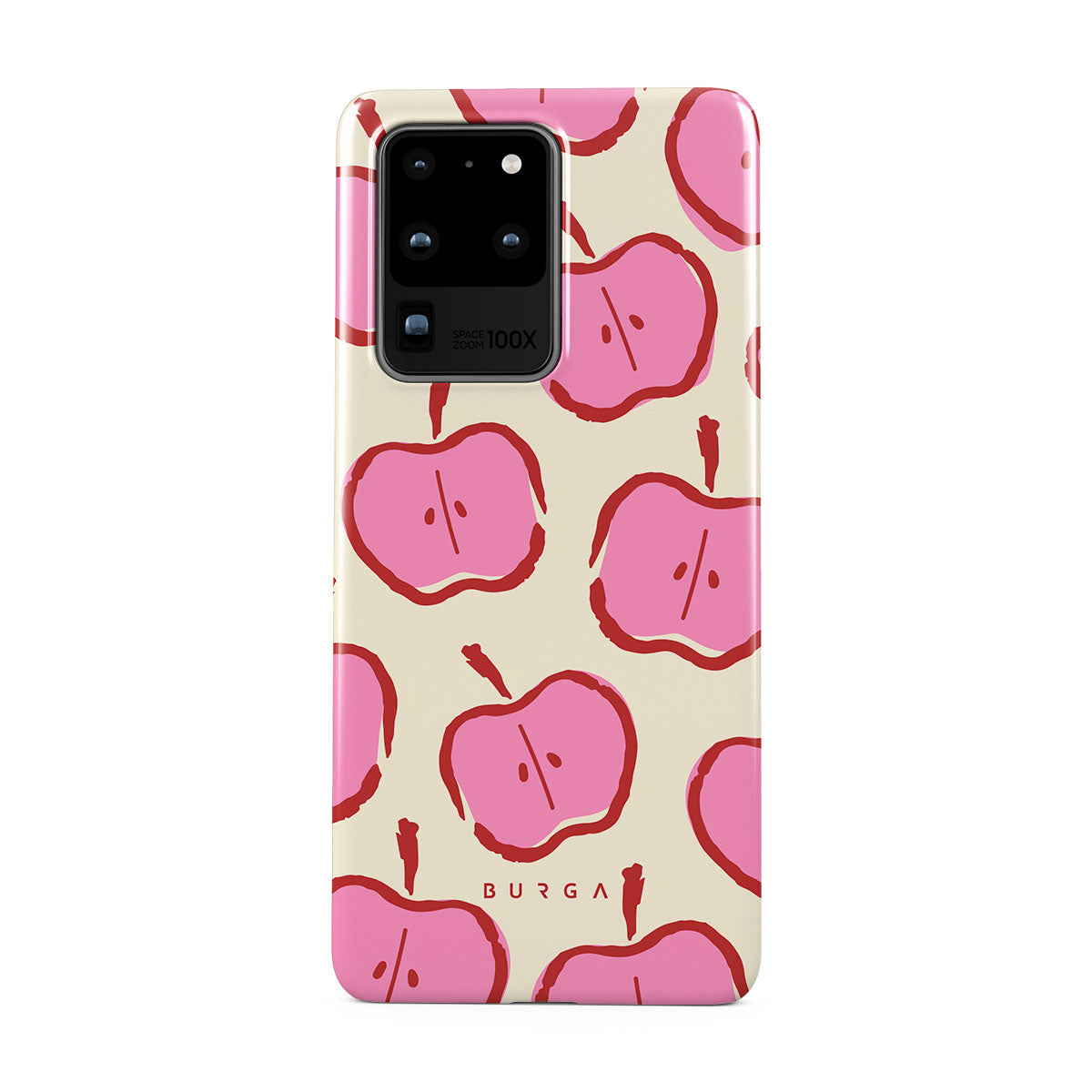 Our Bon Appétit Samsung Galaxy S20 Ultra 4G / 5G phone case design makes every day feel like a magical adventure filled with sweet surprises. The playful pink hues of the apples stand out brilliantly against the serene cream background, creating a captivating and enchanting visual.