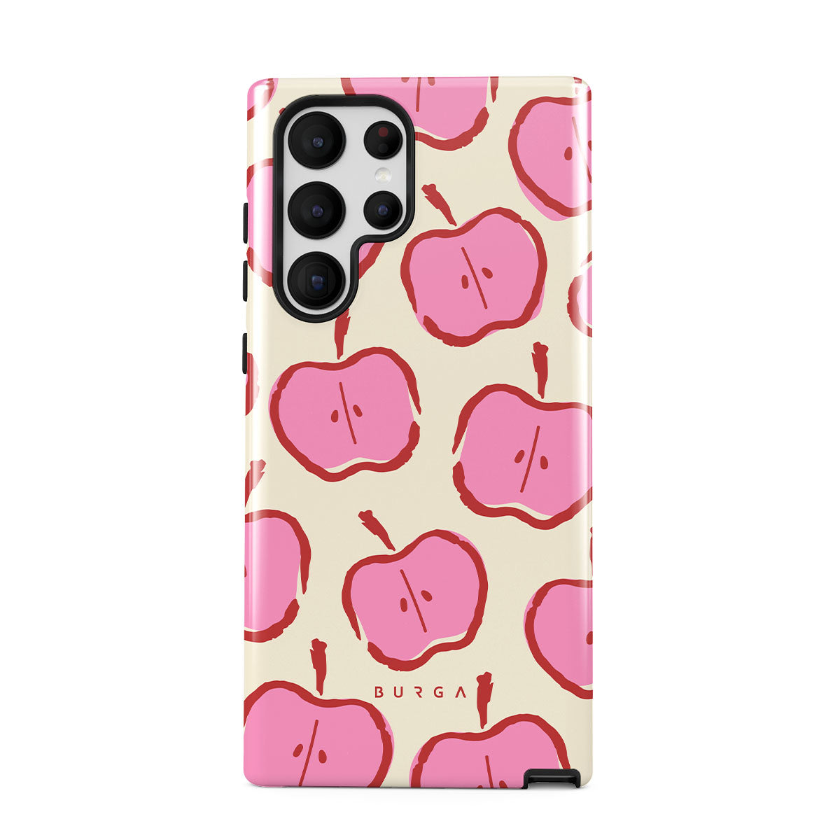 Our Bon Appétit Samsung Galaxy S22 Ultra phone case design makes every day feel like a magical adventure filled with sweet surprises. The playful pink hues of the apples stand out brilliantly against the serene cream background, creating a captivating and enchanting visual.