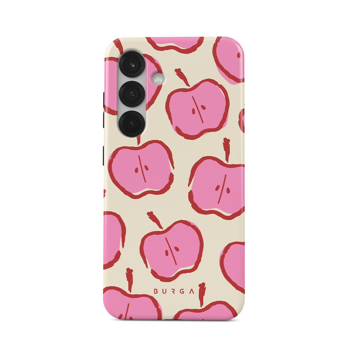Our Bon Appétit Samsung Galaxy S25 phone case design makes every day feel like a magical adventure filled with sweet surprises. The playful pink hues of the apples stand out brilliantly against the serene cream background, creating a captivating and enchanting visual.