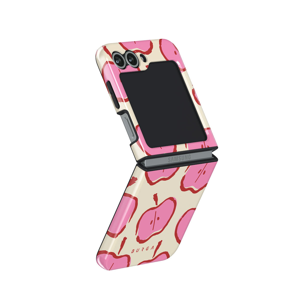 Our Bon Appétit Samsung Galaxy Z Flip 6 phone case design makes every day feel like a magical adventure filled with sweet surprises. The playful pink hues of the apples stand out brilliantly against the serene cream background, creating a captivating and enchanting visual.