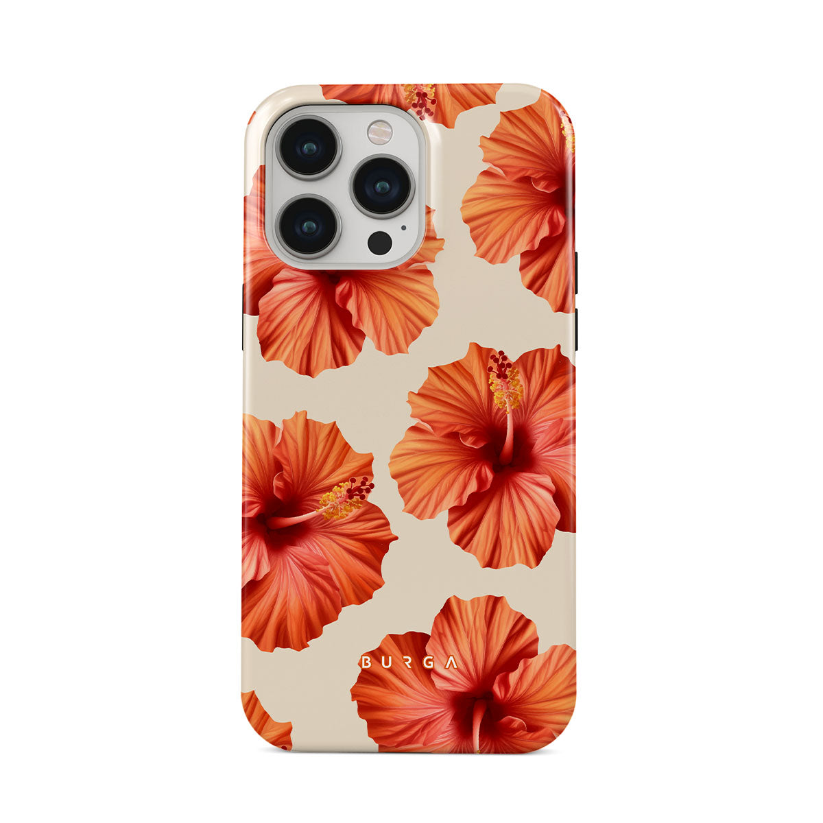 Transport yourself to a lush tropical escape with Bonita. Featuring bold, beautiful hibiscus blooms that pop against a creamy backdrop, this iPhone 13 Pro phone case design is perfect for those who dream of vibrant, floral beauty and exotic adventures.
