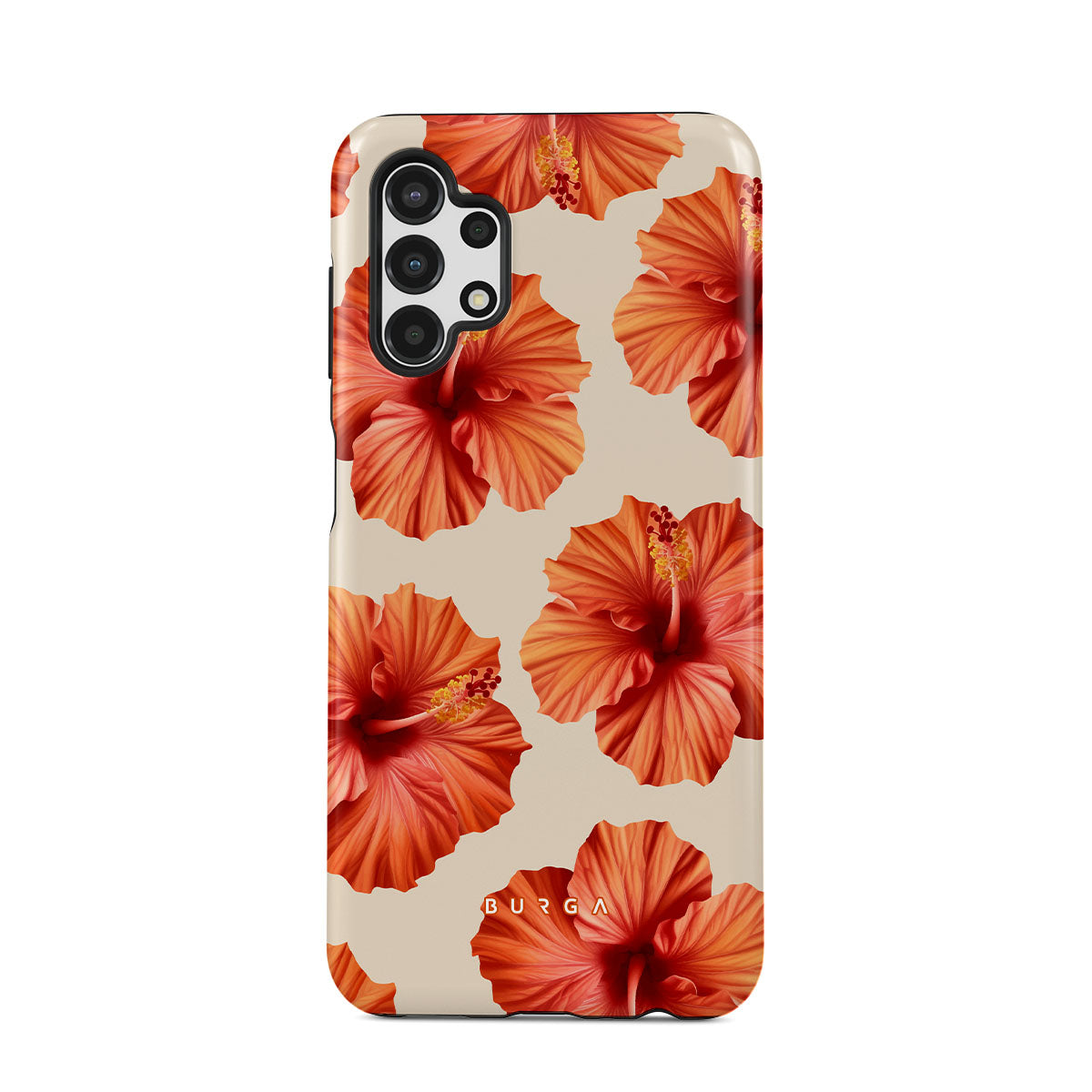 Transport yourself to a lush tropical escape with Bonita. Featuring bold, beautiful hibiscus blooms that pop against a creamy backdrop, this Samsung Galaxy A13 4G phone case design is perfect for those who dream of vibrant, floral beauty and exotic adventures.