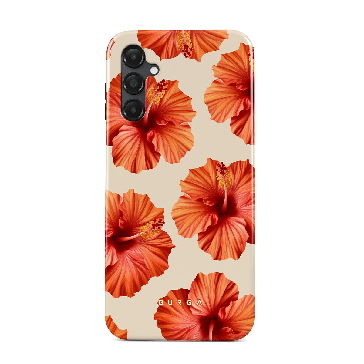 Transport yourself to a lush tropical escape with Bonita. Featuring bold, beautiful hibiscus blooms that pop against a creamy backdrop, this Samsung Galaxy A14 5G phone case design is perfect for those who dream of vibrant, floral beauty and exotic adventures.