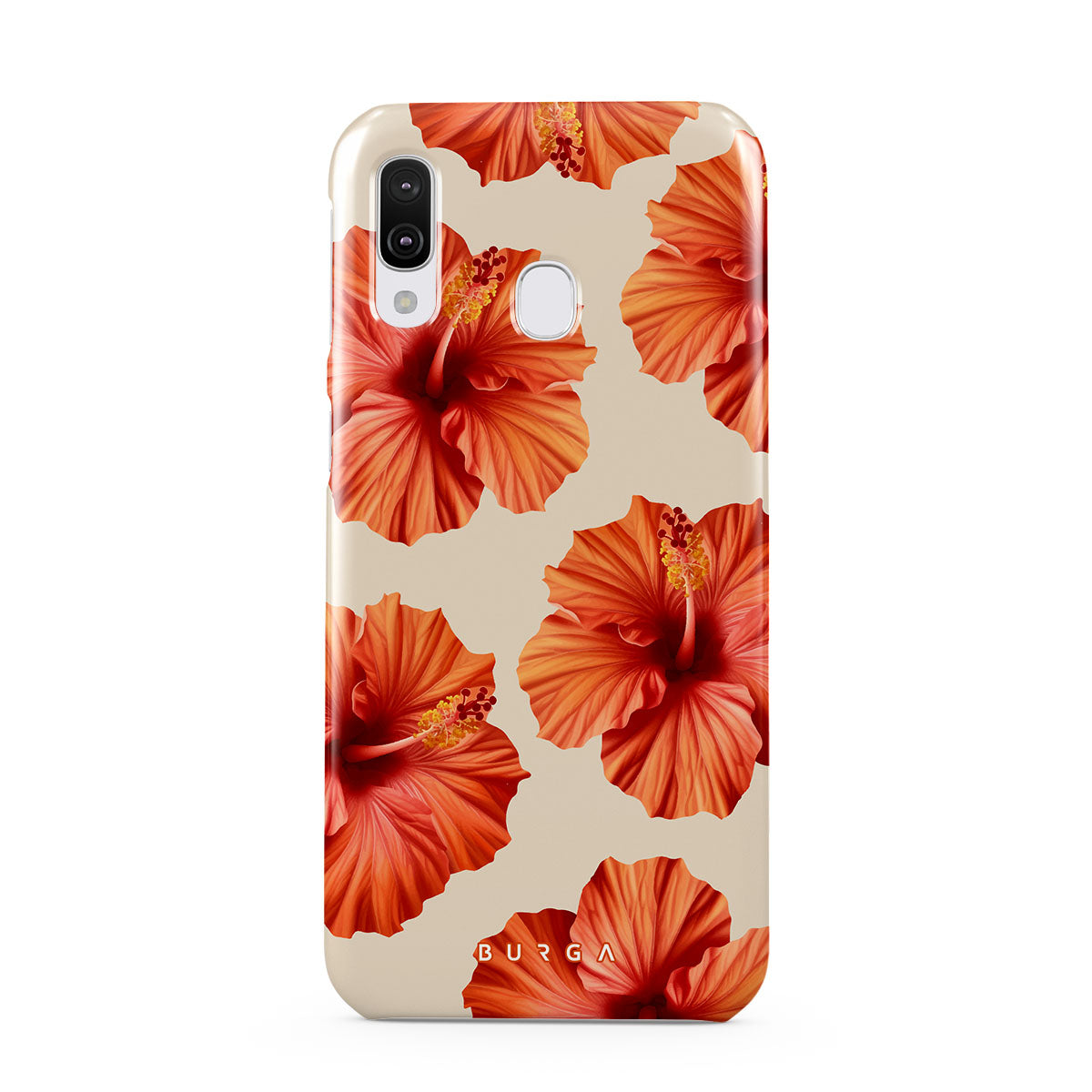 Transport yourself to a lush tropical escape with Bonita. Featuring bold, beautiful hibiscus blooms that pop against a creamy backdrop, this Samsung Galaxy A40 phone case design is perfect for those who dream of vibrant, floral beauty and exotic adventures.