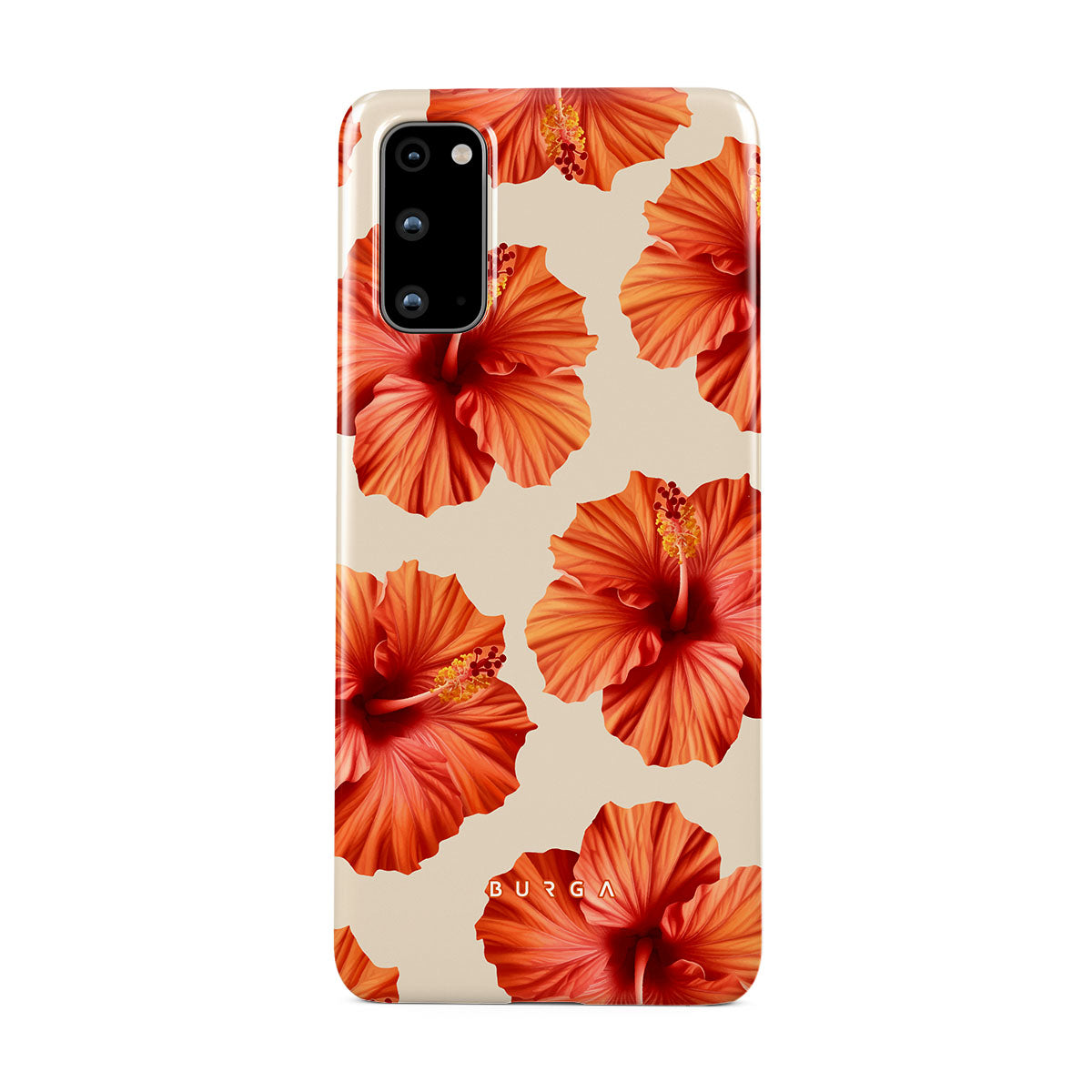 Transport yourself to a lush tropical escape with Bonita. Featuring bold, beautiful hibiscus blooms that pop against a creamy backdrop, this Samsung Galaxy S20 4G / 5G phone case design is perfect for those who dream of vibrant, floral beauty and exotic adventures.
