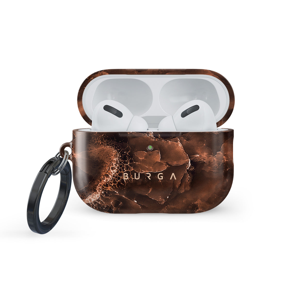 Complete your wardrobe with our warm brown Toasted Chestnut Apple AirPods Pro 3 case cover. Add a touch of brown marble dream to your style and complete your look with a must-have stylish tech accessory. Our case fits perfectly snug around Apple AirPods Pro 3 . “Like a glove!” one might say. And it won’t disrupt the wireless charging capabilities of the newer model. There’s even an LED light indicator to prove it (don’t worry, wired charging still works, too). When fitted, the BURGA case will protect the delicate Apple AirPods Pro 3 case beneath it from scratches, bumps, and drops while remaining scratch-free itself. Our signature design pattern prints are High Quality, and will never peel or fade away- thanks to our unique printing technology. And finally, a handy carabiner is there to make your life easier and more convenient: just snap it around your keys or belt loop and tackle the day head-on. Your music is right there by your side when you need it.
