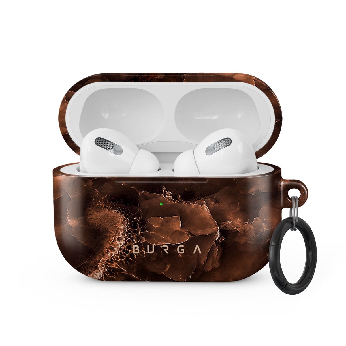 Complete your wardrobe with our warm brown Toasted Chestnut Apple Airpods Pro case cover. Add a touch of brown marble dream to your style and complete your look with a must-have stylish tech accessory. Our case fits perfectly snug around Apple Airpods Pro . “Like a glove!” one might say. And it won’t disrupt the wireless charging capabilities of the newer model. There’s even an LED light indicator to prove it (don’t worry, wired charging still works, too). When fitted, the BURGA case will protect the delicate Apple Airpods Pro case beneath it from scratches, bumps, and drops while remaining scratch-free itself. Our signature design pattern prints are High Quality, and will never peel or fade away- thanks to our unique printing technology. And finally, a handy carabiner is there to make your life easier and more convenient: just snap it around your keys or belt loop and tackle the day head-on. Your music is right there by your side when you need it.