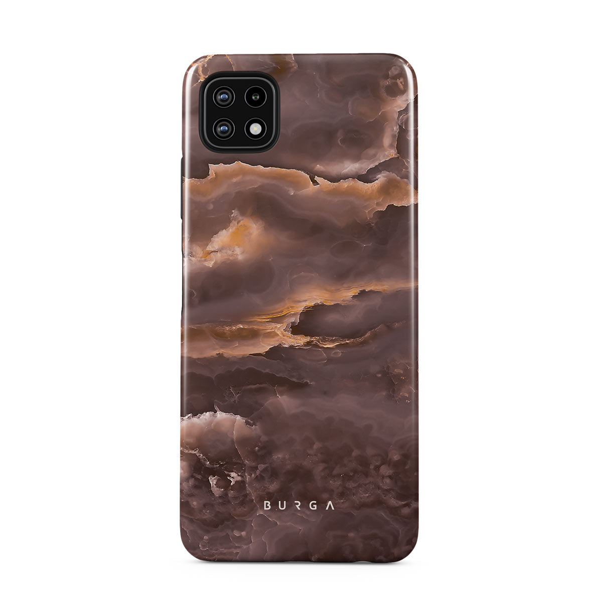 The bonfire starts to flicker – it's time to gather more wood. With a brown marble Samsung Galaxy A22 5G phone case design inspired by a bonfire flame, carry a feeling of content and excitement wherever you go. The protective case is needed in a hike, but a stylish accessory will match your aesthetic even on a lazy Sunday.