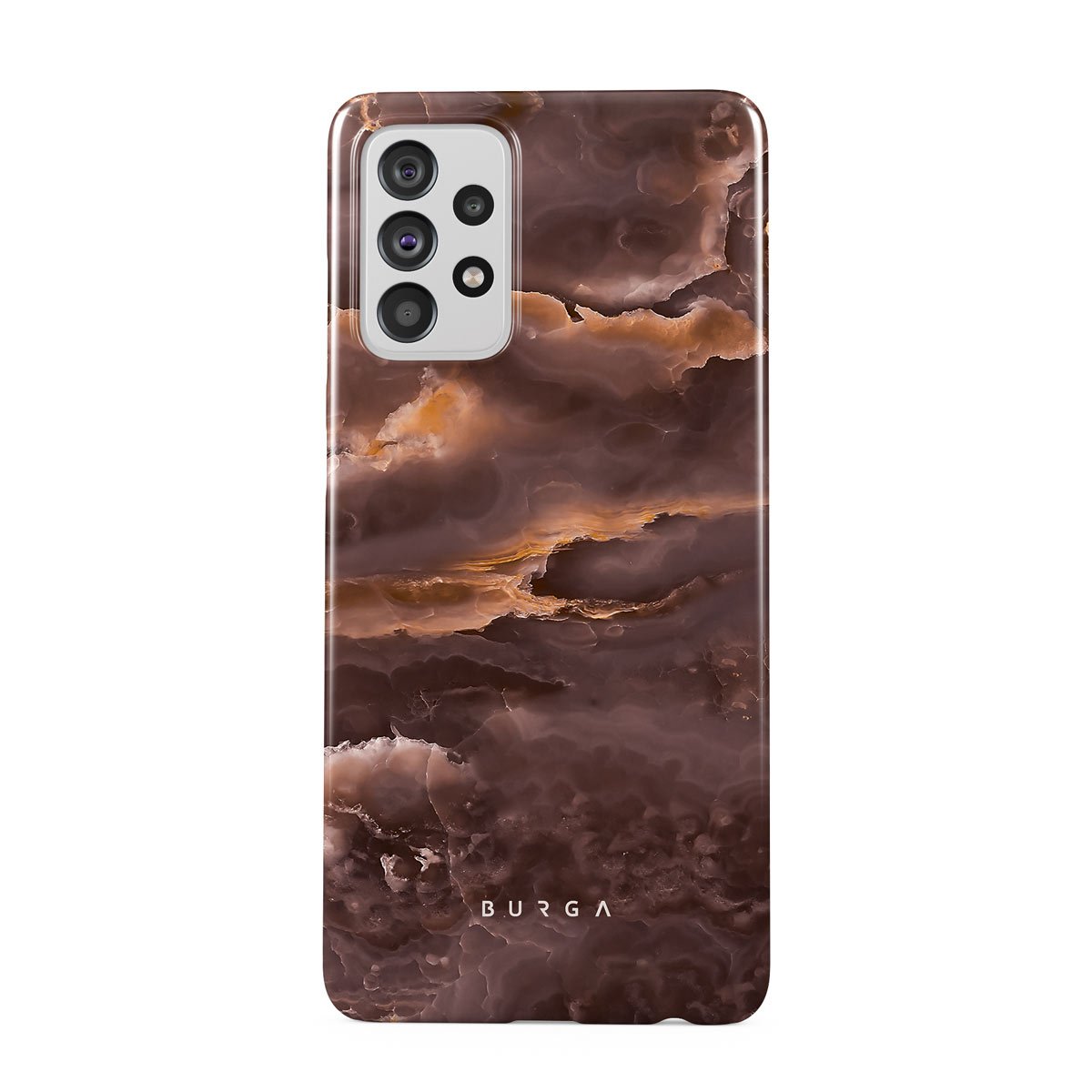 The bonfire starts to flicker – it's time to gather more wood. With a brown marble Samsung Galaxy A72 phone case design inspired by a bonfire flame, carry a feeling of content and excitement wherever you go. The protective case is needed in a hike, but a stylish accessory will match your aesthetic even on a lazy Sunday.