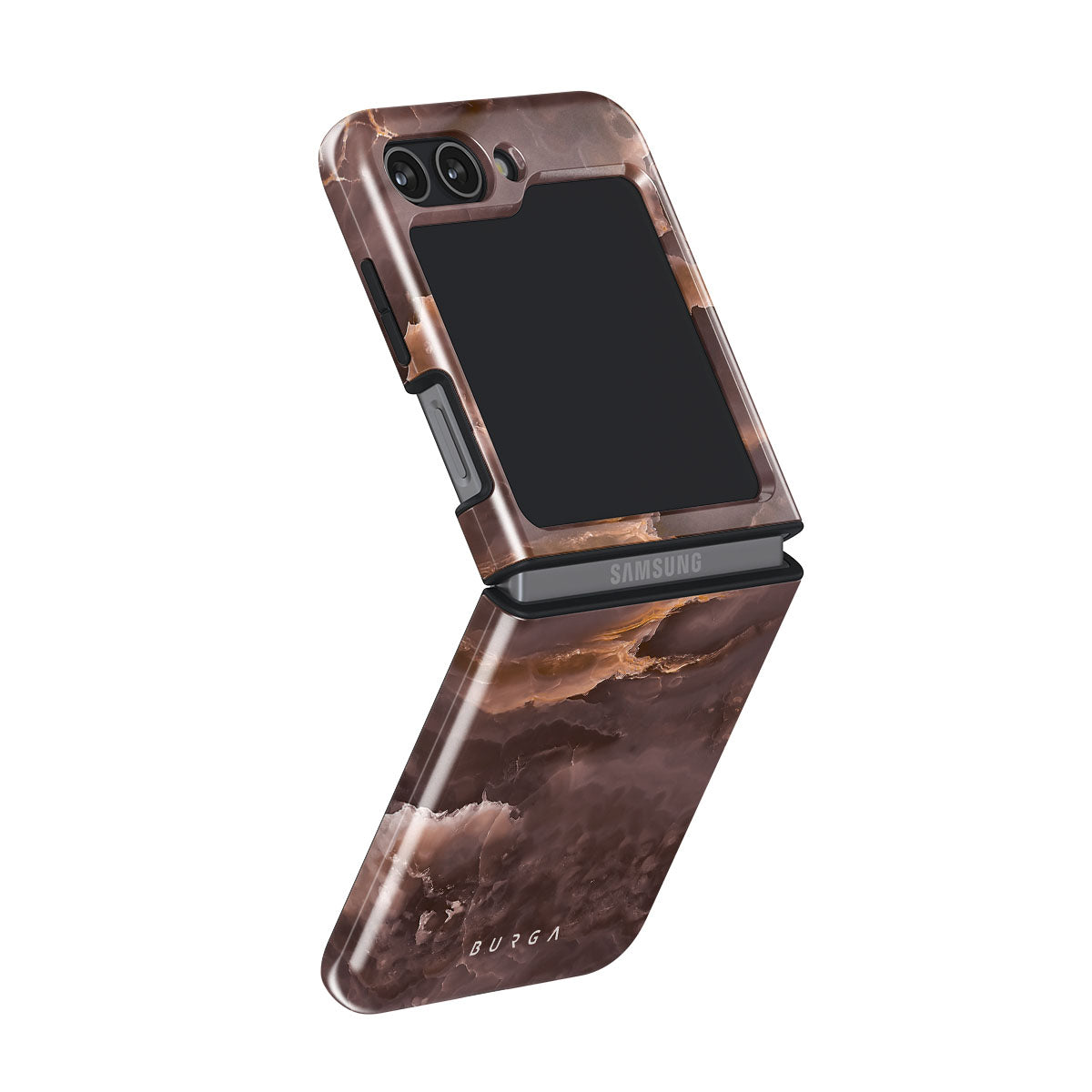 The bonfire starts to flicker – it's time to gather more wood. With a brown marble Samsung Galaxy Z Flip 5 phone case design inspired by a bonfire flame, carry a feeling of content and excitement wherever you go. The protective case is needed in a hike, but a stylish accessory will match your aesthetic even on a lazy Sunday.