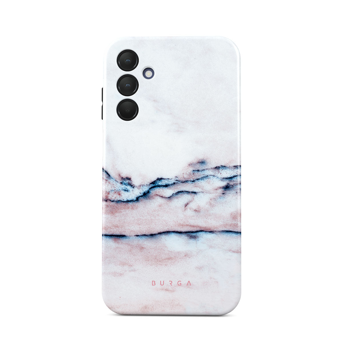 A pastel phone case is a must in every collection, and our soft Bubble Gum Samsung Galaxy A51 phone case is the one. The minimalistic design features a pink gradient with deep blue swirls in a marble pattern. Such a hard-shell case will provide heavy-duty protection while adding a touch of pastel to your collection
