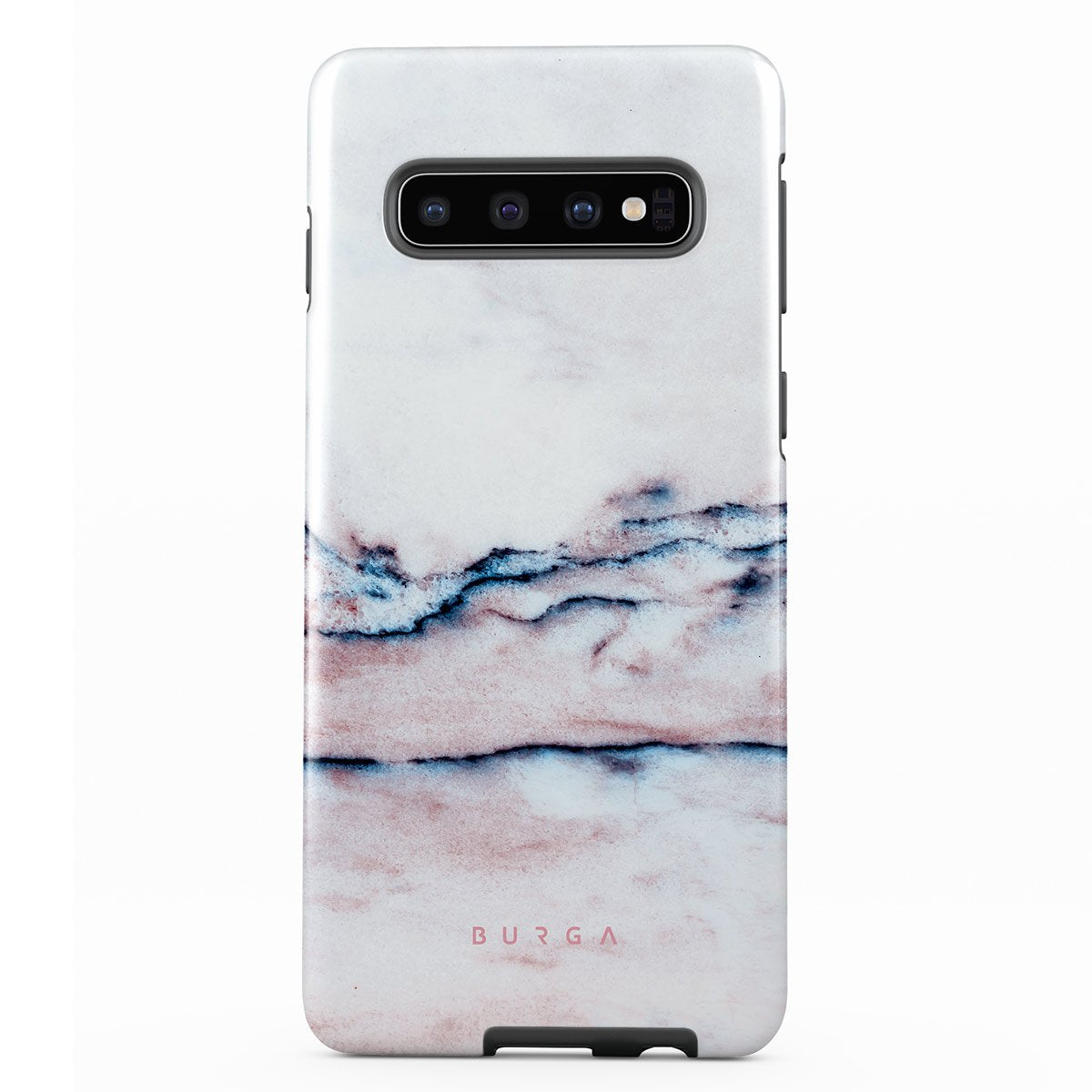A pastel phone case is a must in every collection, and our soft Bubble Gum Samsung Galaxy S10 phone case is the one. The minimalistic design features a pink gradient with deep blue swirls in a marble pattern. Such a hard-shell case will provide heavy-duty protection while adding a touch of pastel to your collection