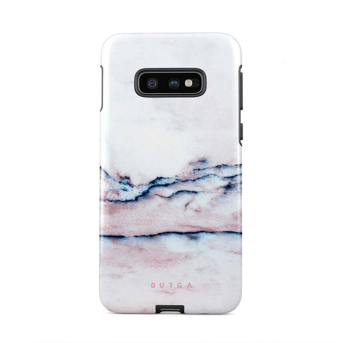 A pastel phone case is a must in every collection, and our soft Bubble Gum Samsung Galaxy S10E phone case is the one. The minimalistic design features a pink gradient with deep blue swirls in a marble pattern. Such a hard-shell case will provide heavy-duty protection while adding a touch of pastel to your collection