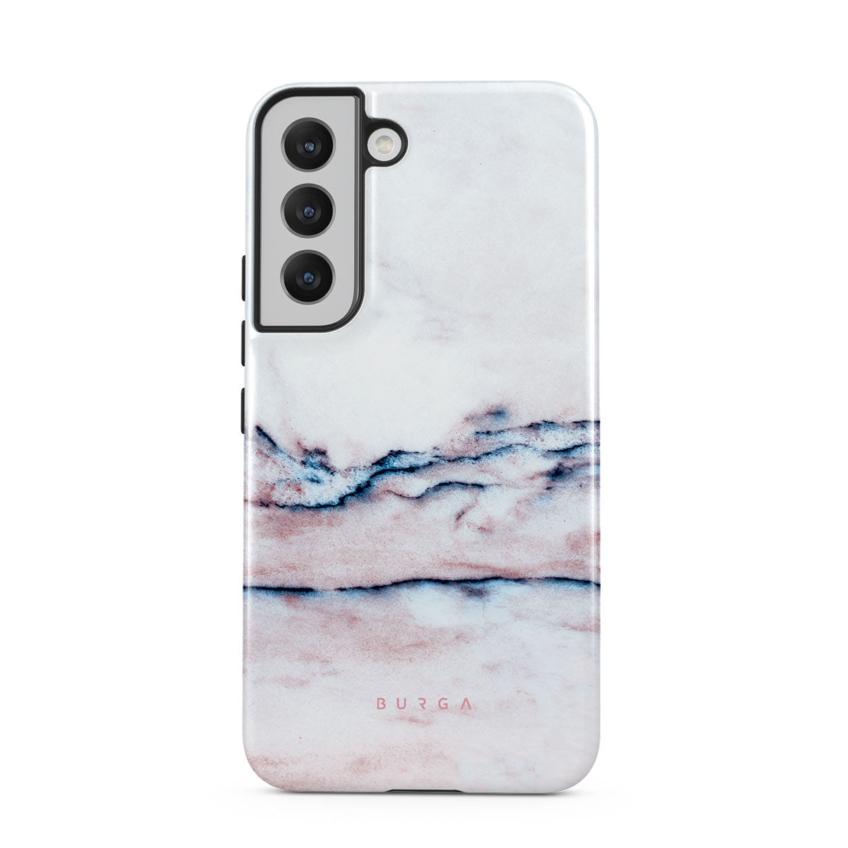 A pastel phone case is a must in every collection, and our soft Bubble Gum Samsung Galaxy S22 phone case is the one. The minimalistic design features a pink gradient with deep blue swirls in a marble pattern. Such a hard-shell case will provide heavy-duty protection while adding a touch of pastel to your collection