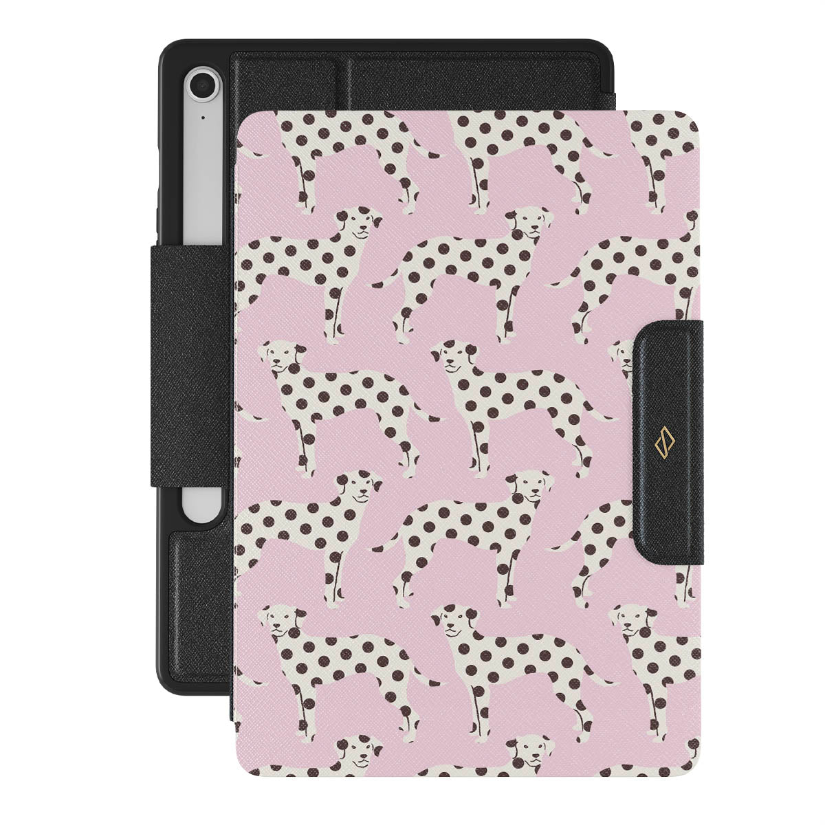 This design features: dalmatians on a baby pink background, dogs.