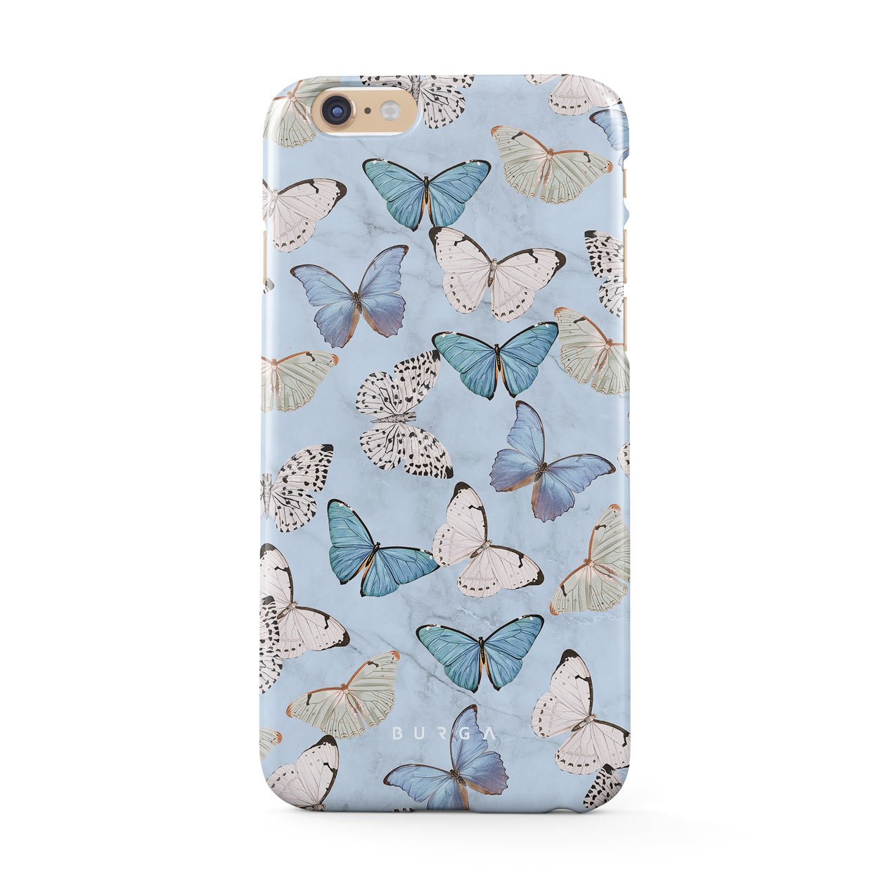 Pastel blue and a playful pattern of summery butterflies create a dreamy combination in our iPhone 6 / 6S phone case. Carry the feeling of the butterflies in your stomach while protecting your phone from any dangers, as the hard-shell case will keep it sound and safe.