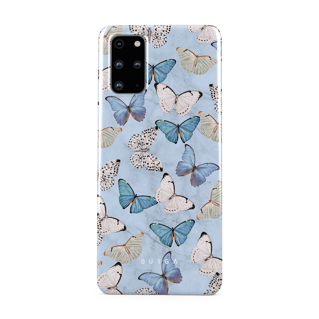 Pastel blue and a playful pattern of summery butterflies create a dreamy combination in our Samsung Galaxy S20 Plus 4G / 5G phone case. Carry the feeling of the butterflies in your stomach while protecting your phone from any dangers, as the hard-shell case will keep it sound and safe.