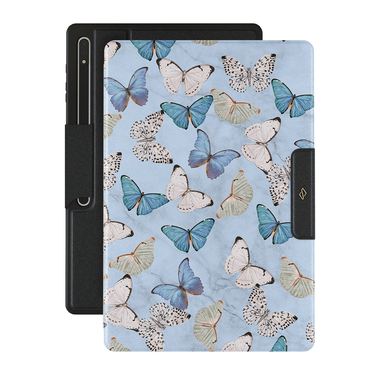 Pastel blue and a playful pattern of summery butterflies create a dreamy combination in our Samsung Galaxy Tab S9 Ultra folio case. Carry the feeling of the butterflies in your stomach while protecting your Galaxy Tab from any dangers, as the hard-shell case will keep it sound and safe.
