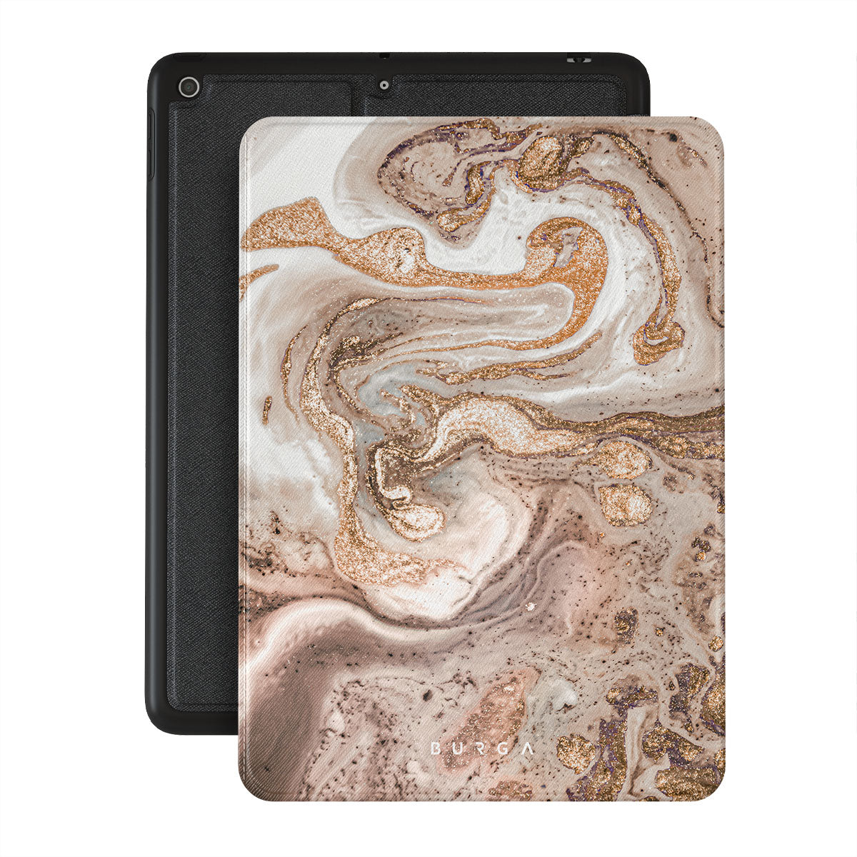 Our enchanting Cappuccino iPad 10.2 (9th/8th/7th Gen) folio case showcases a sophisticated and creamy marble pattern with golden swirls in it. The marble dream radiates elegance and luxury and is guaranteed to add some to your style.