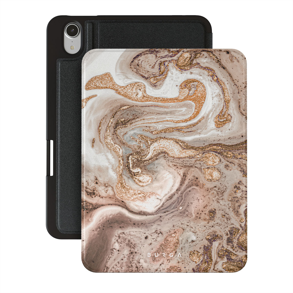 Our enchanting Cappuccino iPad Mini 8.3 (A17 Pro/6th Gen) 2021 folio case showcases a sophisticated and creamy marble pattern with golden swirls in it. The marble dream radiates elegance and luxury and is guaranteed to add some to your style.