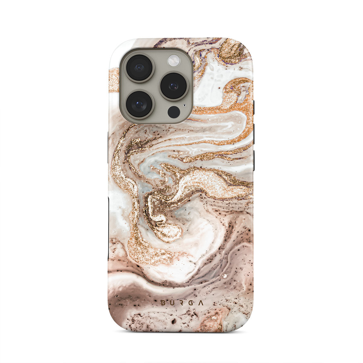 Our enchanting Cappuccino iPhone 16 Pro phone case showcases a sophisticated and creamy marble pattern with golden swirls in it. The marble dream radiates elegance and luxury and is guaranteed to add some to your style.