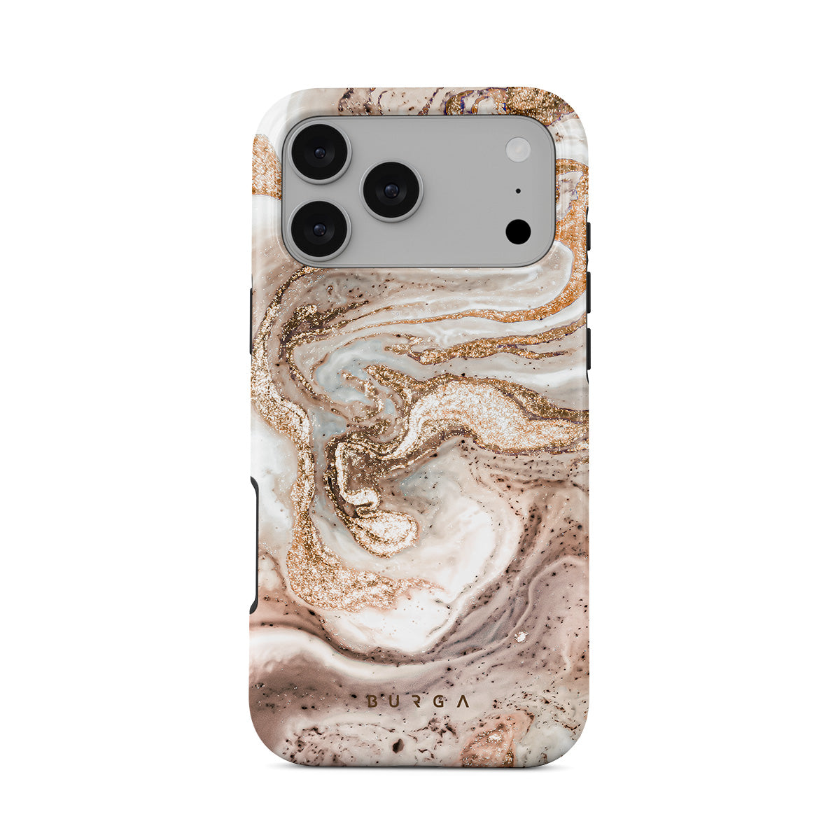 Our enchanting Cappuccino iPhone 17 Pro Max phone case showcases a sophisticated and creamy marble pattern with golden swirls in it. The marble dream radiates elegance and luxury and is guaranteed to add some to your style.