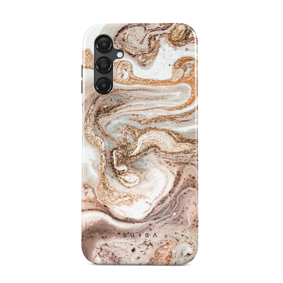 Our enchanting Cappuccino Samsung Galaxy A25 phone case showcases a sophisticated and creamy marble pattern with golden swirls in it. The marble dream radiates elegance and luxury and is guaranteed to add some to your style.