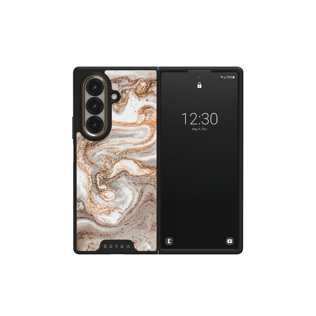 Our enchanting Cappuccino Samsung Galaxy Z Fold 7 phone case showcases a sophisticated and creamy marble pattern with golden swirls in it. The marble dream radiates elegance and luxury and is guaranteed to add some to your style.