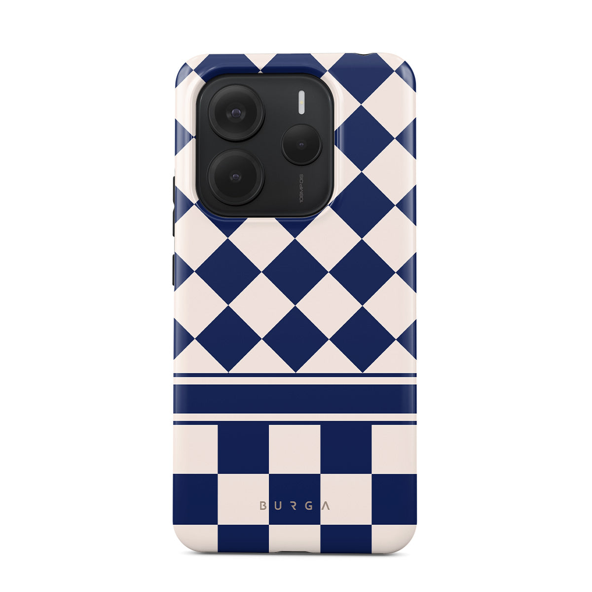 Embrace the essence of subtle luxury with our Check & Mate Xiaomi Redmi Note 14 5G phone case design. Blending eggshell and deep blue checkers, it evokes whispers of elegance. While diamonds grace the upper half, the lower half features a timeless chessboard pattern.