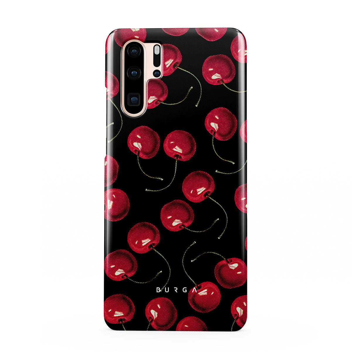 On a deep black background, rich red cherries stand out. Tempting and audacious, our Cherrybomb Huawei P30 Pro phone case design is perfect for anyone who likes to keep things simple yet striking.
