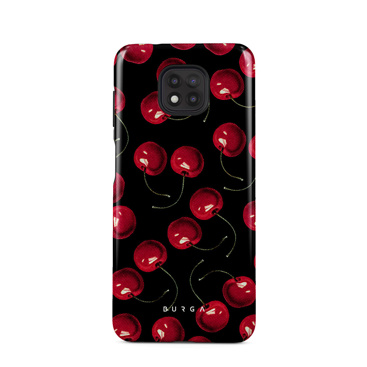 On a deep black background, rich red cherries stand out. Tempting and audacious, our Cherrybomb Motorola Moto G Power 2021 phone case design is perfect for anyone who likes to keep things simple yet striking.