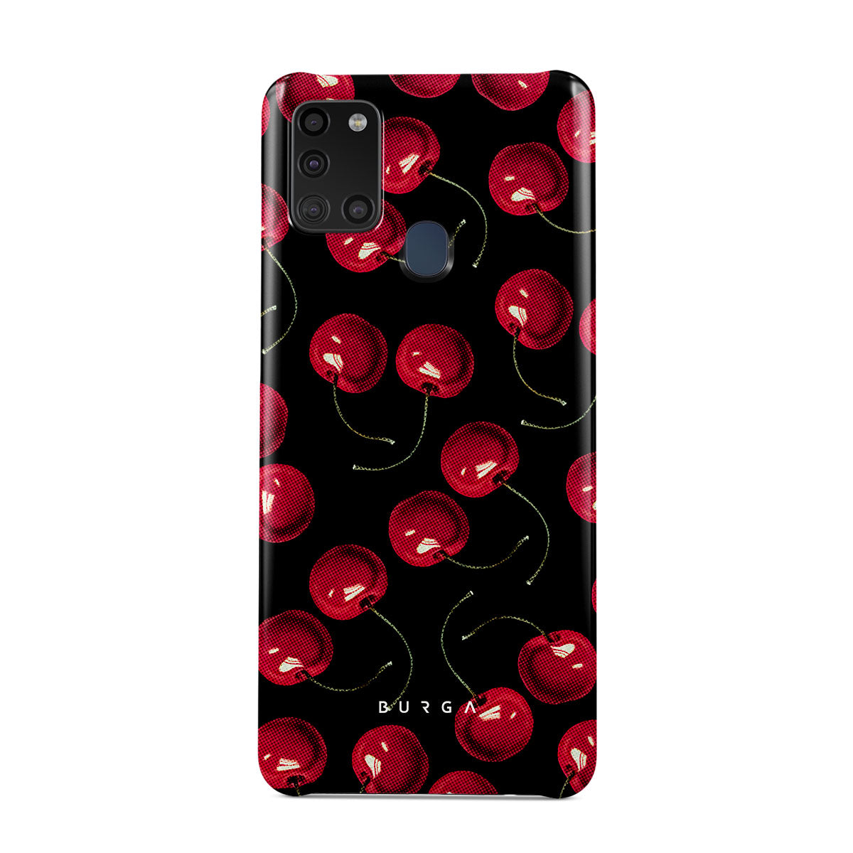 On a deep black background, rich red cherries stand out. Tempting and audacious, our Cherrybomb Samsung Galaxy A21s 4G phone case design is perfect for anyone who likes to keep things simple yet striking.